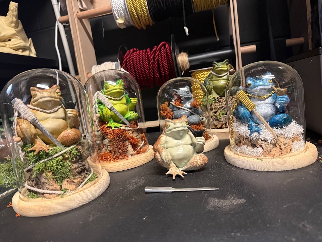 Dalla prima progettazione, agli stampi in silicone, alla colata di resine, all'intrecciamento delle corde, fino alla pittura meticolosa che avviene sotto la luce fioca delle ore piccole, il nostro è un processo totalmente manuale, viscerale e lento.